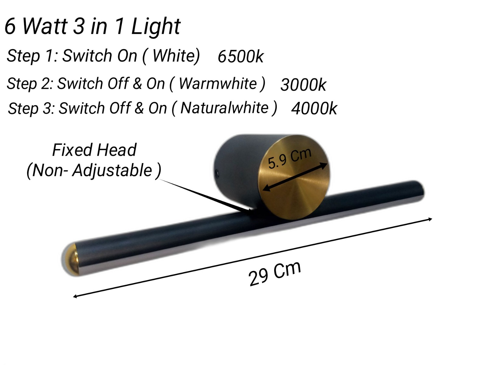 FILLISKA® 6 Watt Modern LED Picture/Dressing/Vanity/Bathroom/Mirror Light with 3 Step Light Mode & Non-Adjustable Head (White, Warm White and Neutral White) (6 Watt Black & Brass Finish)