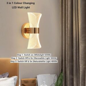 FILLISKA Luxurious Acrylic Crystal Wall Lamp with Adjustable Colour Changing Function, Elegant Finish (Acrylic FrenchGold-336)
