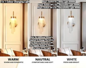 FILLISKA Luxurious Acrylic Crystal Wall Lamp with Adjustable Colour Changing Function, Elegant Finish (Acrylic FrenchGold-B31)