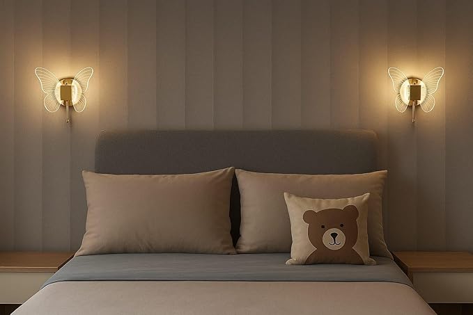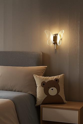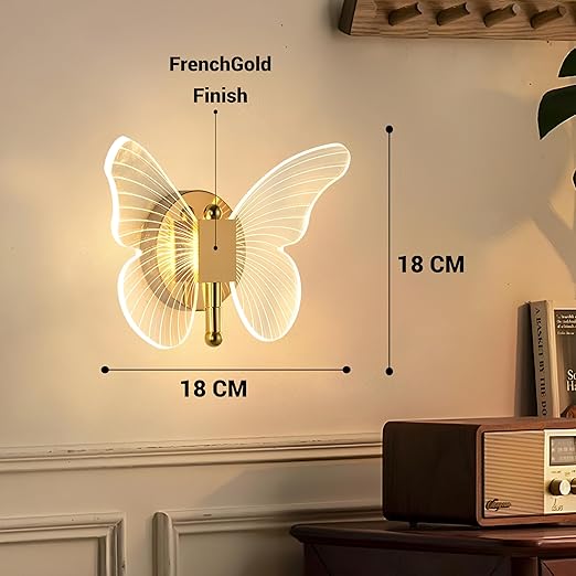 FILLISKA Luxurious Acrylic Crystal Wall Lamp with Adjustable Colour Changing Function, Elegant Finish (FrenchGold Butterfly-321)