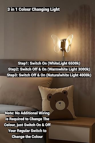 - 3 Step Colour Changing Modes Step 1: Switch On ( White light 6500k) Step 2: Switch Off & On ( Warmwhite light 3000k) Step 3: Switch Off & On ( Naturalwhite light 4000k)